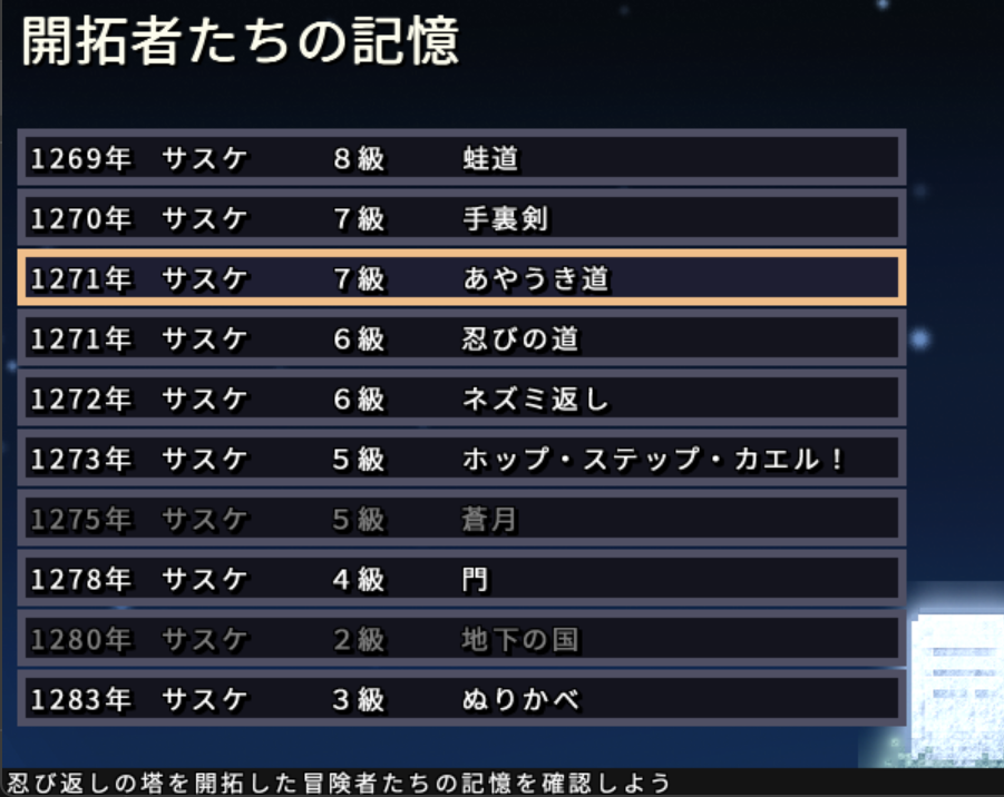 1000年の間、塔に挑んだ冒険者たちの「想い」を確認できます