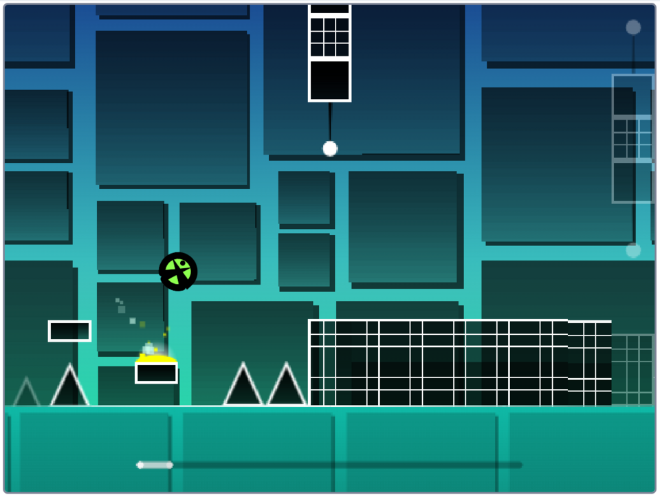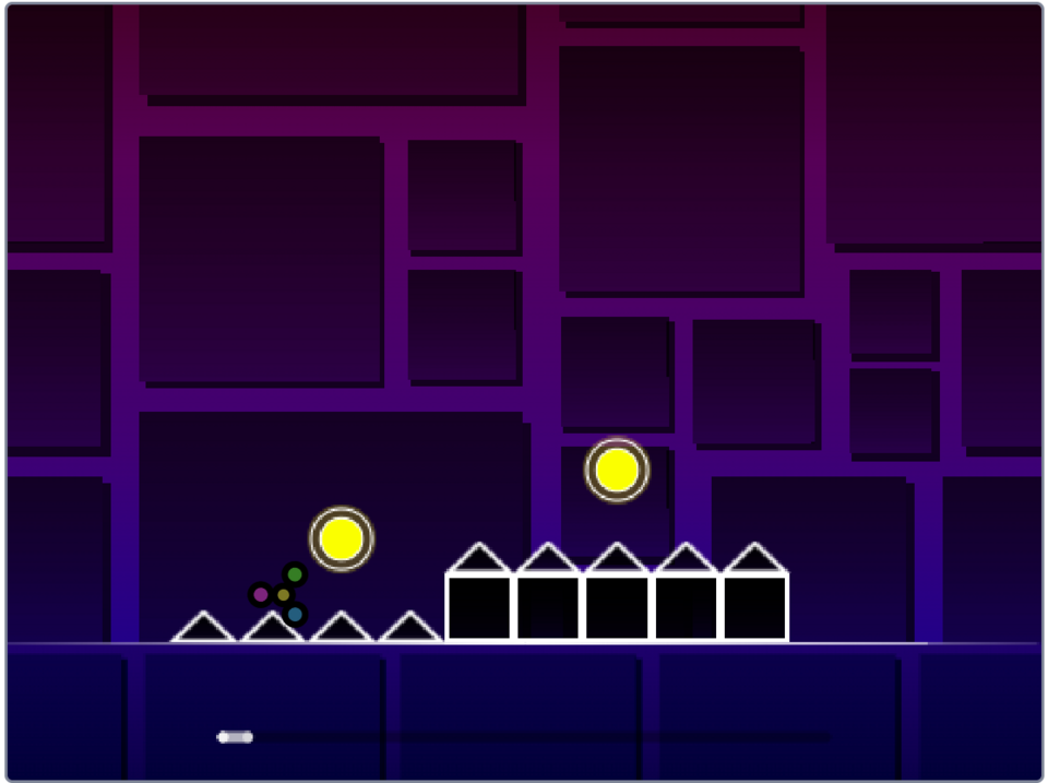 ジオメタリダッシュは、画面をタップしてキャラクターをジャンプさせ、障害物をよけながら進むアクションゲームです。