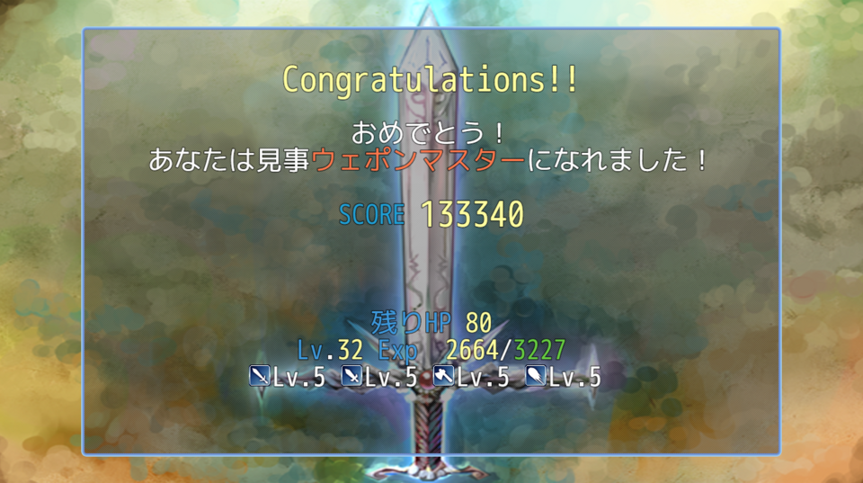 ・武器レベルが上昇すると威力・発動スピードが上昇します