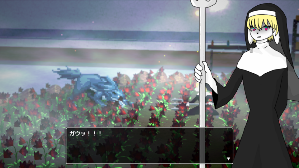 RPG Developer Bakinの素材と、ちぇーしゃが描いた絵を使って、ちぇーしゃ1人で製作しています。製作期間約8か月。