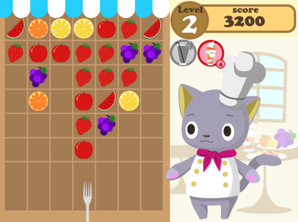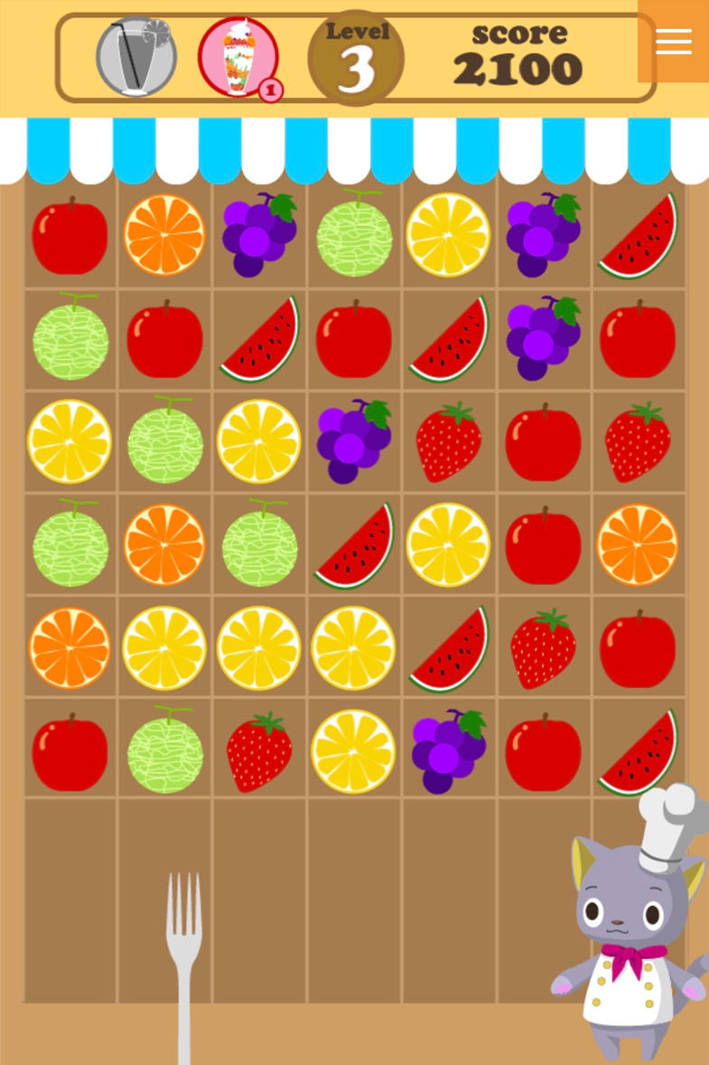 同じ果物を3つ以上ゲットして、果物を消していくパズルゲームだよ♫