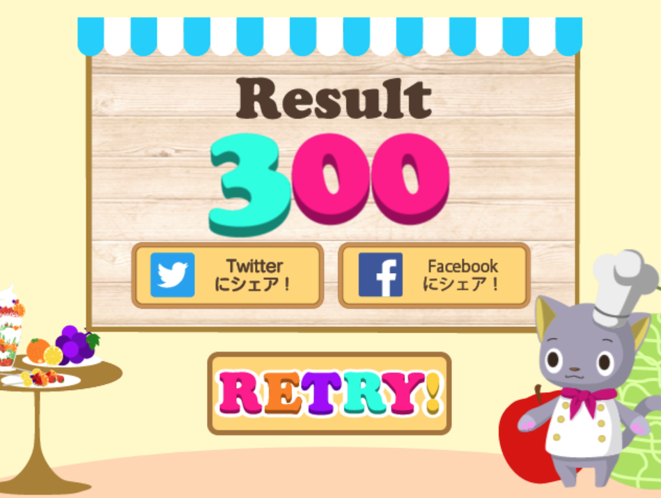フォークに7個の果物が刺さるとゲームオーバーになっちゃうよ(´;ω;`)