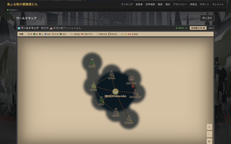 灰ふる世界を探索。新たな街やダンジョンを発見し、冒険の範囲を広げていく。
