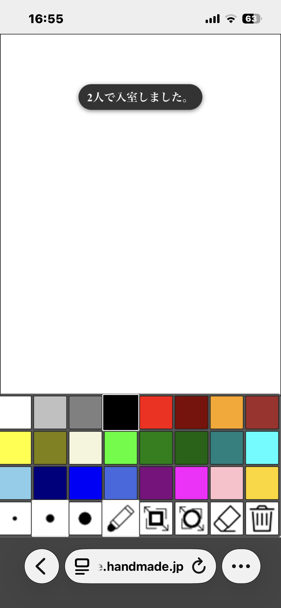 端っこにゴミ箱のアイコンがあり、クリックすると自分が描いたものだけが全部消えますが、描いては消してを繰り返せる、気軽に・・・