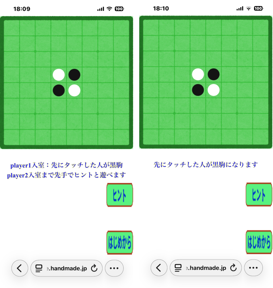 どっちかの色が置けない時に、置けない事が表示されるのが良かったです。