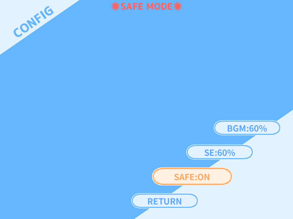 プレイを配信される場合、R15要素の低減にセーフモードも用意しています。「CONFIG」からどうぞ。
