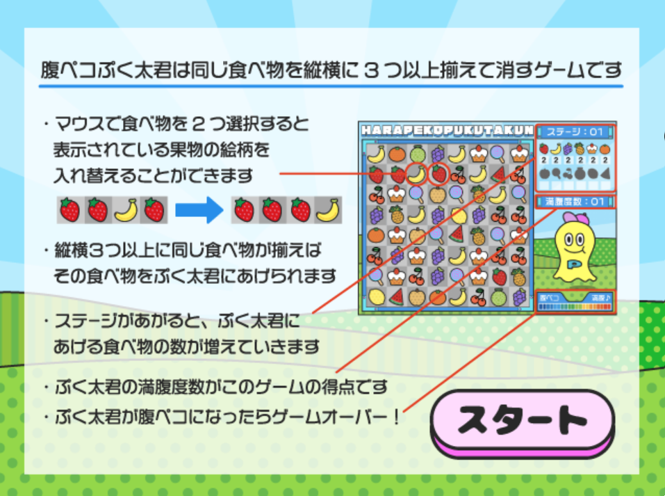 ぷく太君が空腹になったらゲームオーバーだよ↓