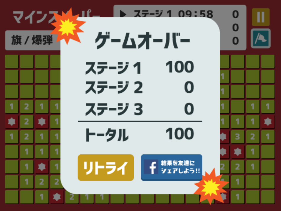 ◎地雷を踏んだ時点でゲームオーバー