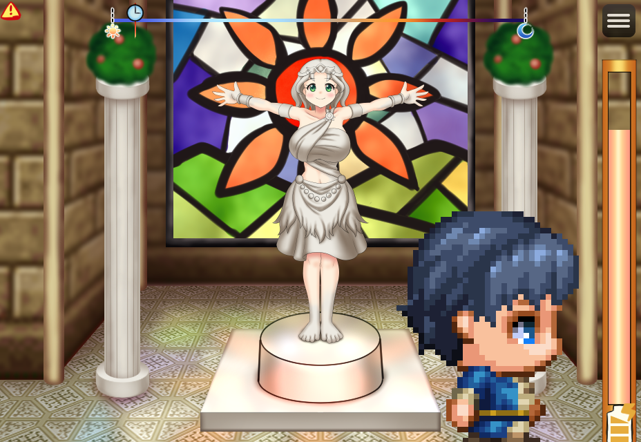歪癖を持った者によって両腕を広げたポーズに造られた女神像が何とか人目を盗んで休憩しながら1日耐え抜くミニゲームです。