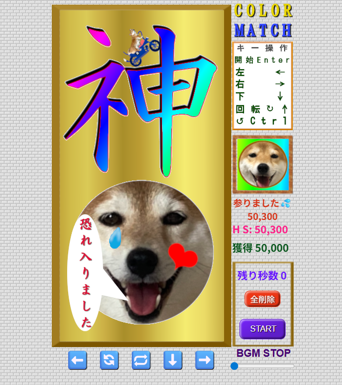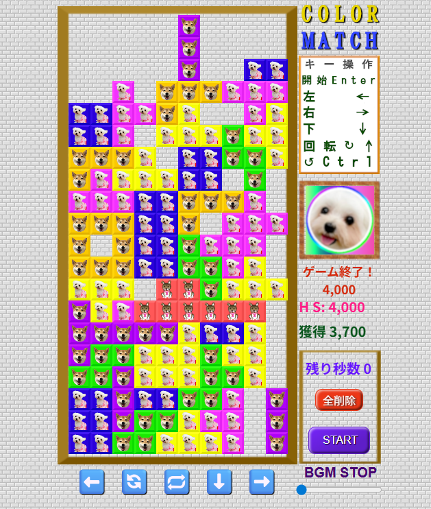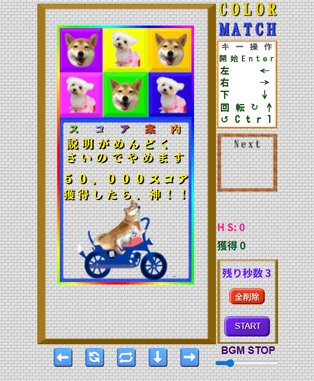 このゲームはテトリスをモチーフに多少アレンジした柴犬テトリス風 COLOR MUCHです