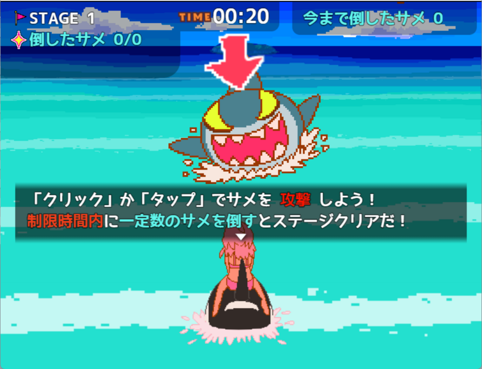 サメをマウスでクリックすると倒せる簡単&爽快操作!