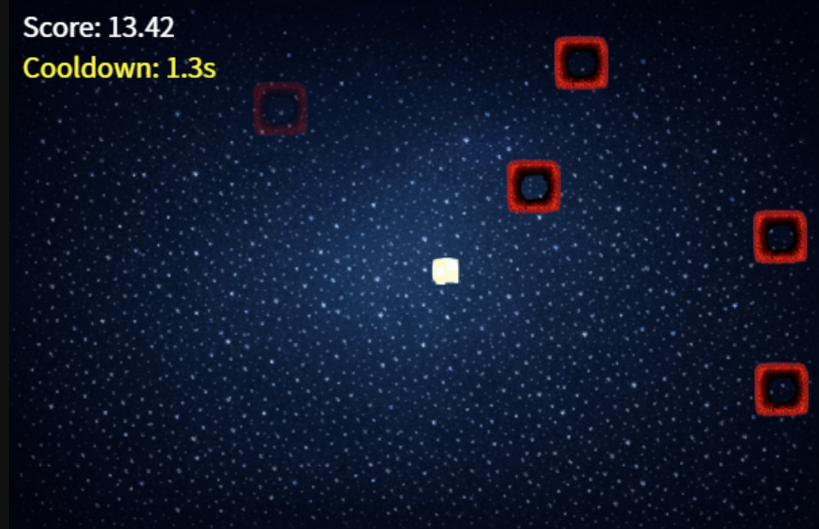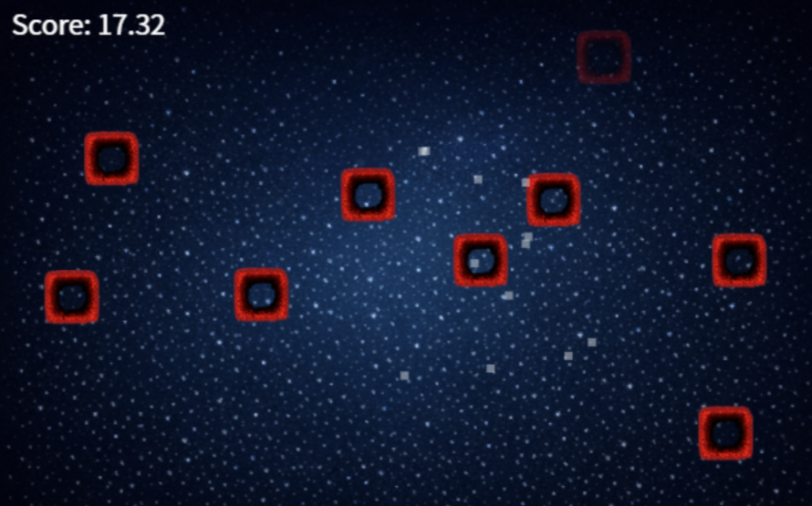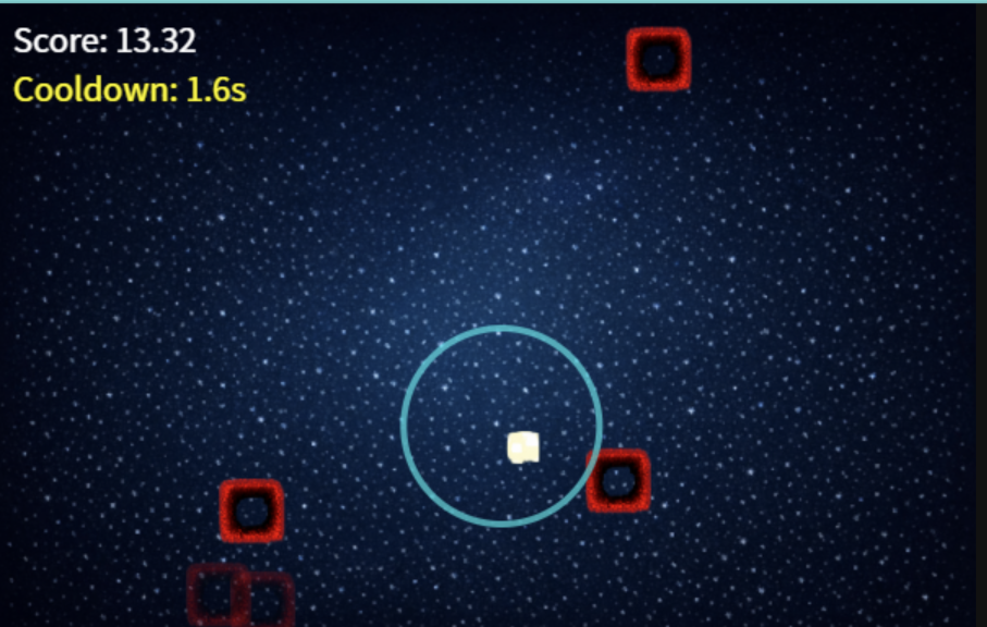 左クリックで自機の周囲にサークルが表示され、そのサークルに敵が触れると敵が消滅します。(クールタイムあり。連発はできません)
