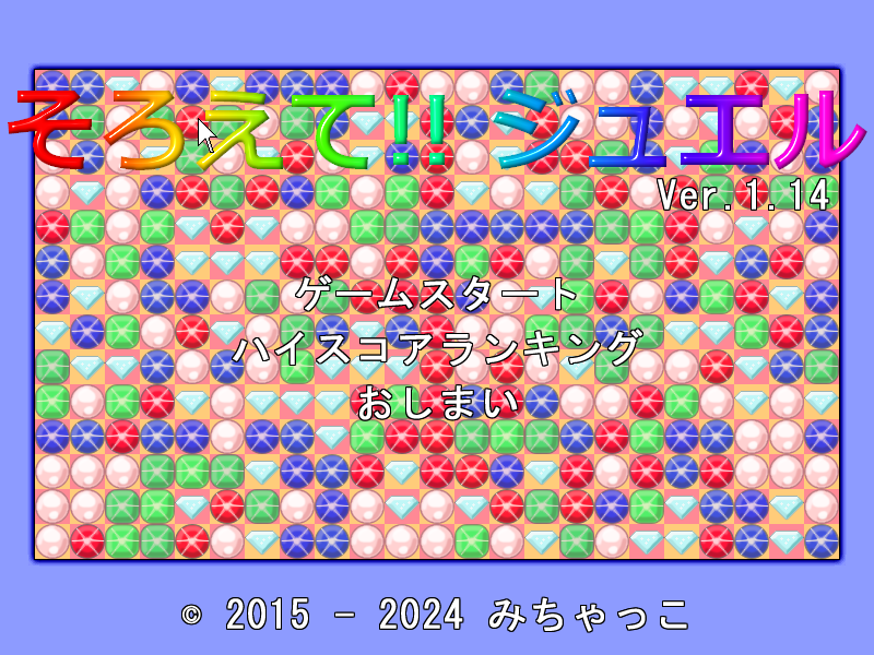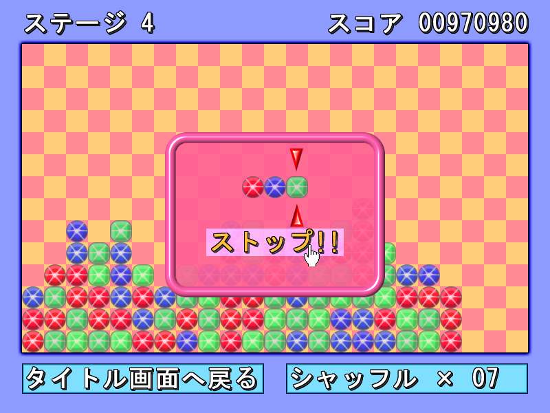 宝石をそろえてスコアを稼ぐパズルゲームです。ステージは6面あります。