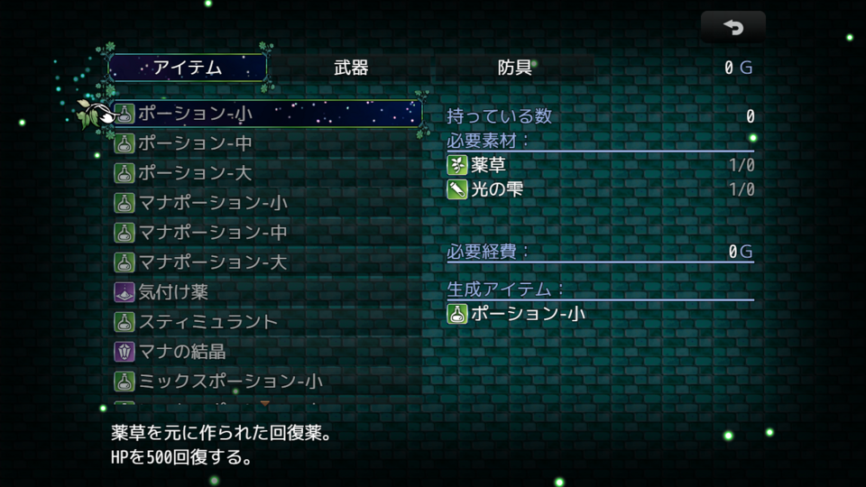 アイテム合成機能で、ショップでは手に入らない強力アイテムを作成可能。