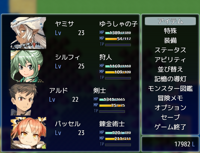 マップとシナリオは完成していますが登場する仲間キャラのスキルを作っているところです。