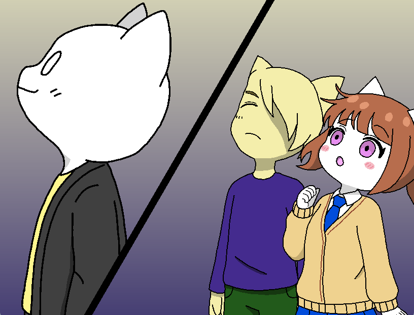02)AA(アスキーアート)由来のかわいいキャラクターが登場します。人間キャラクターは登場しません。