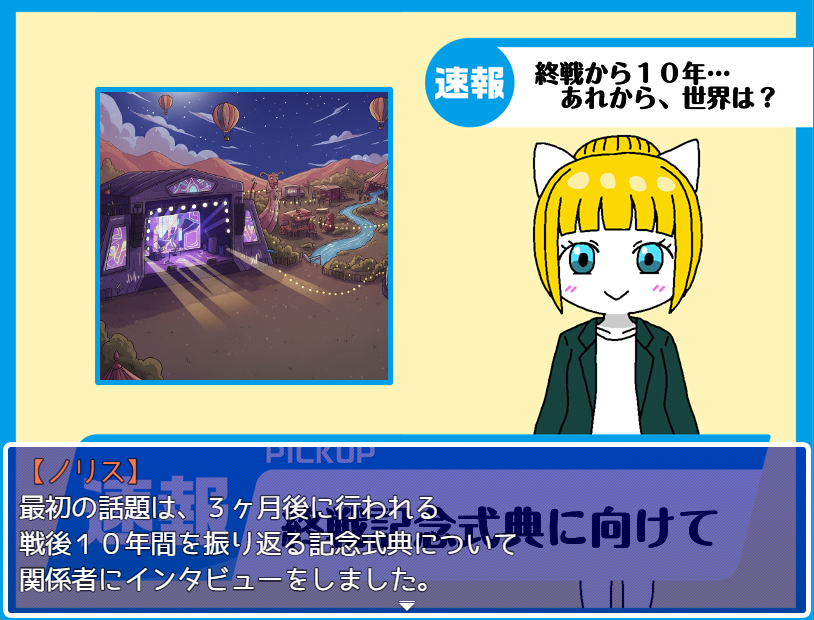 03)物語の舞台は、現代風都市です。インターネットをイメージした電脳世界の中にある…という設定です。