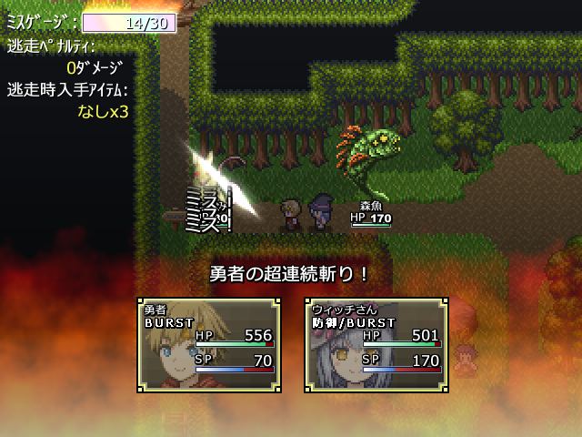 攻撃が当たらなくなった勇者が呪いを解くため、魔王を倒しに行く短編RPGです。