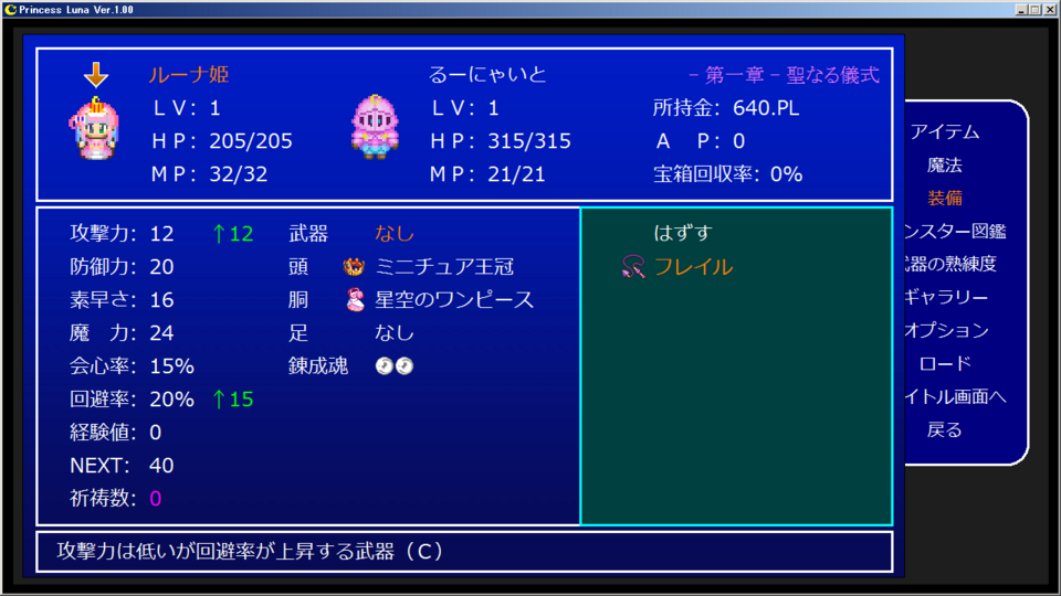 ゲームシステムはSFC初期辺りの時代をイメージして制作しましたので非常にシンプル且つ複雑な所はほとんどありません。