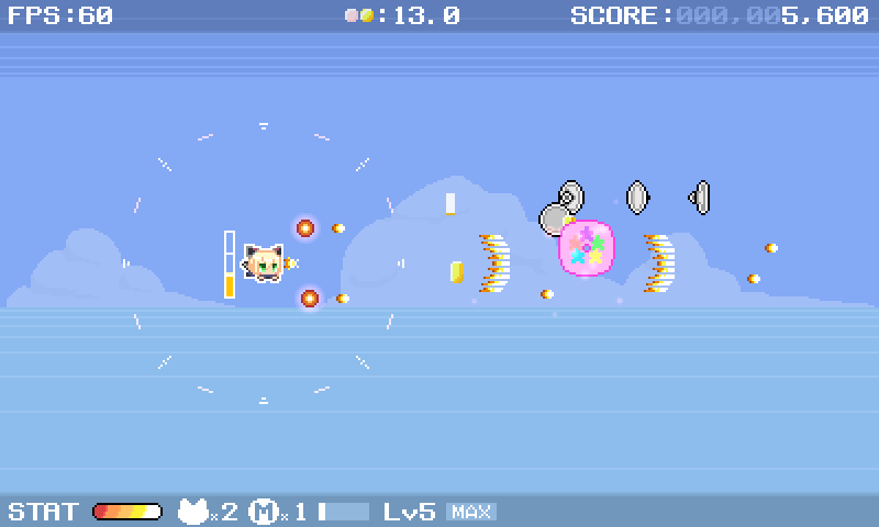 往年の2DSTG要素を摘まみつつ、私自身プレイして楽しいと思えるシューティングプレイ感覚を大切に作りました。