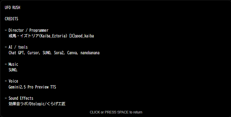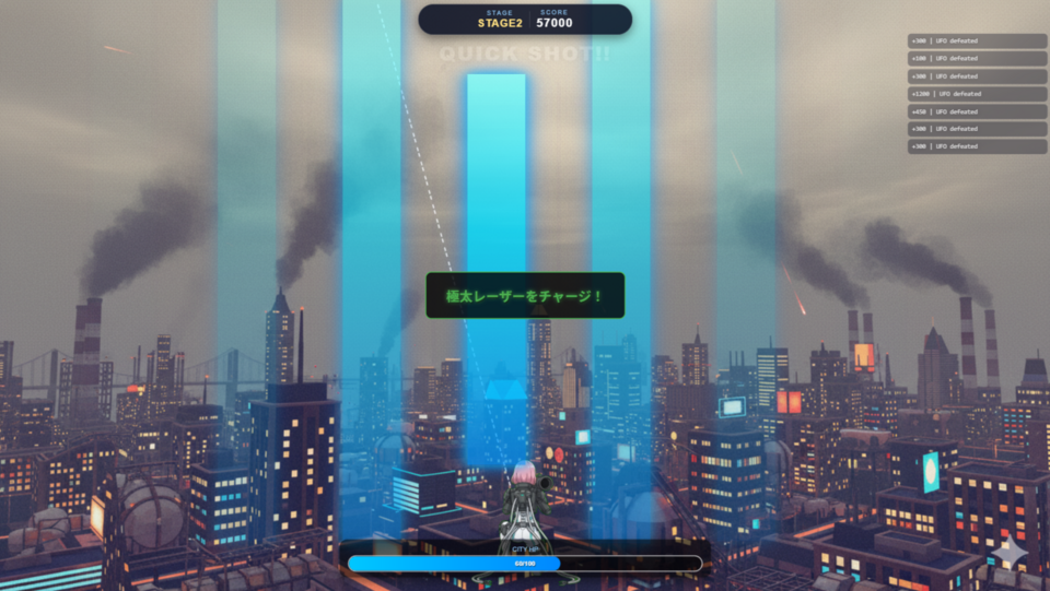 ・UFOを撃破するとスコアを獲得。出現直後に素早く倒すとボーナスが入ります。