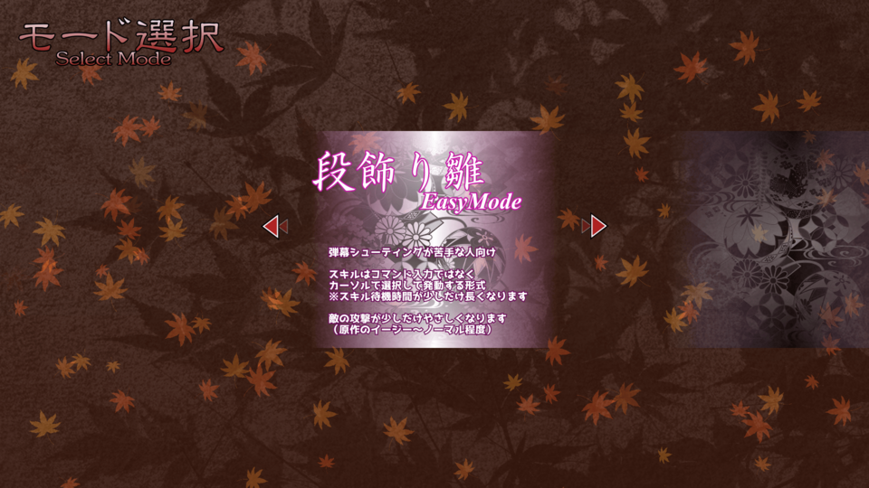 難易度はイージーモード(原作基準でEasy~Normal)とハードモード(原作基準でHard~Lunatic)の2種類