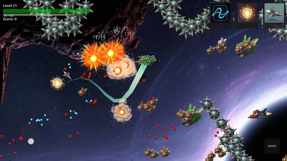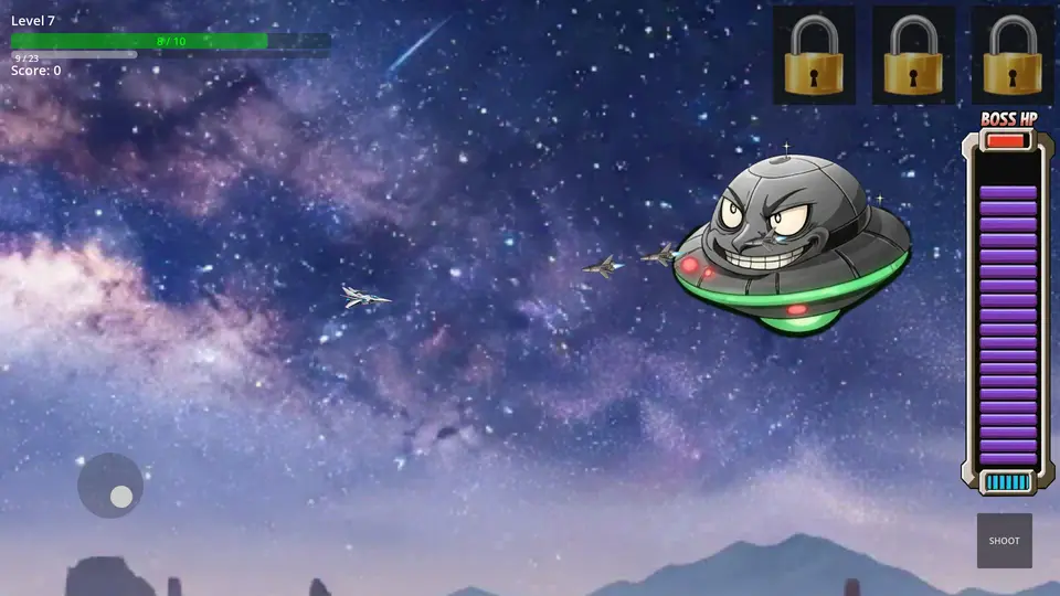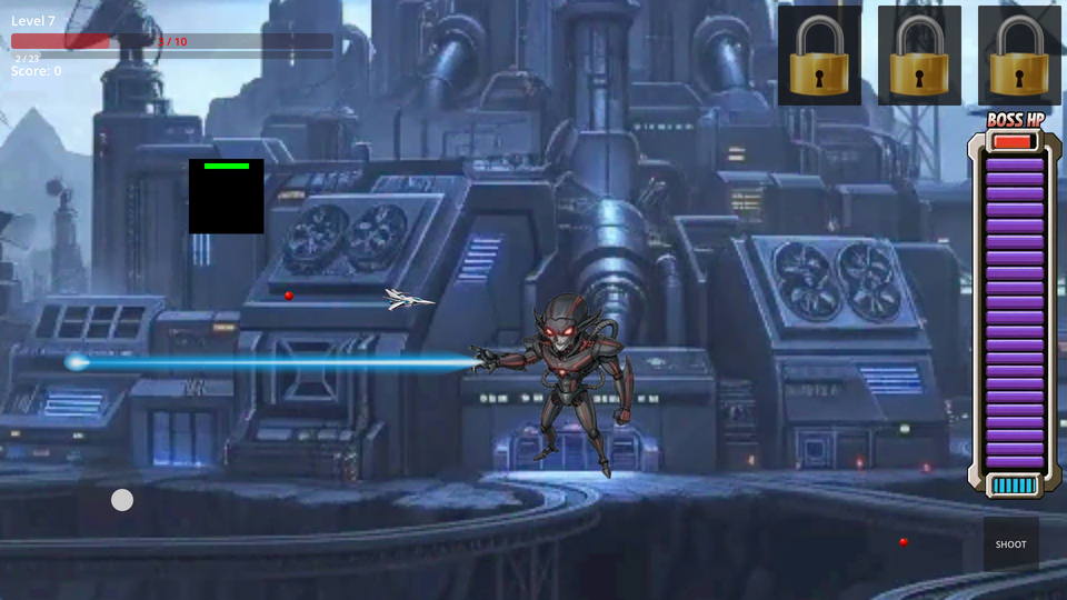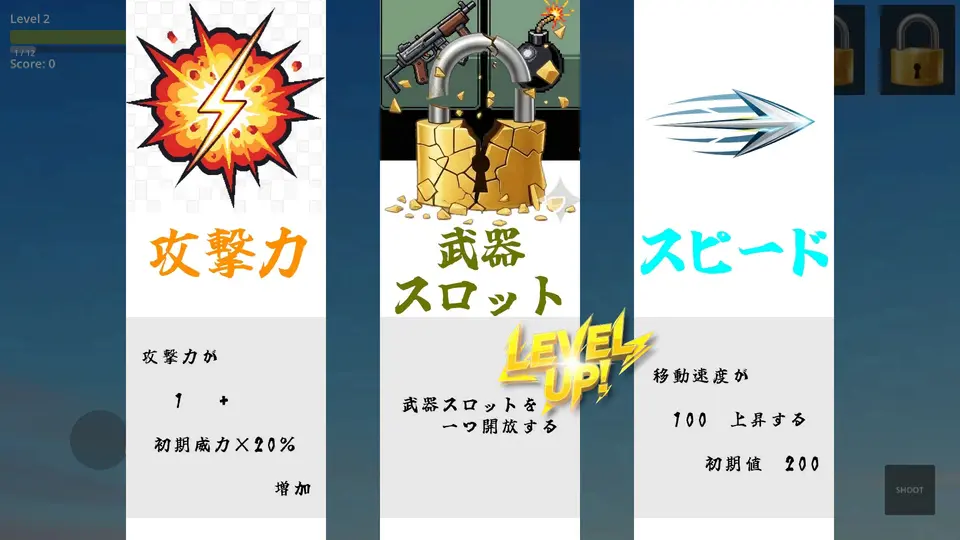 ☆レベルアップによるステータス上昇と弱点=特効のあるボス&武器をとりいれた横スクロールシューティングです。