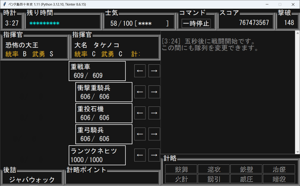 計略と隊列変更を駆使して戦います。