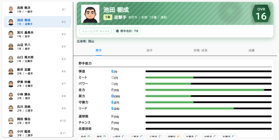 - 選手の成長・卒業システム