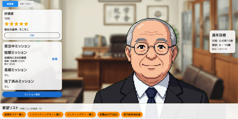 ・校長室追加しミッションを用意。クリアで報酬