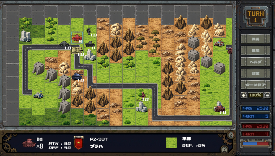 自軍ユニットを指揮し、敵軍の殲滅・拠点制圧を目指せ。