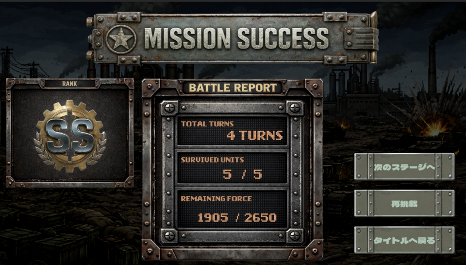 地形効果・射程・支援攻撃・挟撃など、戦術的要素を丁寧に実装しました。