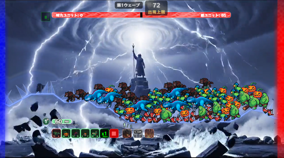 ユニット大量生成で味方も敵もぶっ飛びまくるゲームです