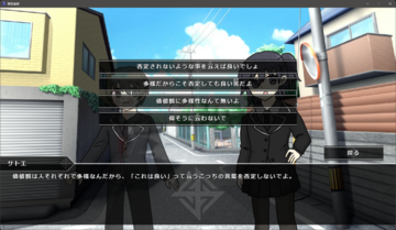 形式:選択肢型クイズノベル(選択肢を選んで議論をしていく)。