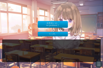 恋愛が分からない人が作った恋愛ゲーム~恋愛ってこういうもんでしょ?~ 恋愛が分からない人が作った恋愛シミュレーション 投稿者Poki 投稿日2025年 7月 30日 このゲームは評価ならびにコメントを受け付けていません。 ・初めて作ったゲームなので大目に見てください。・選択肢によってエンディングが分岐するので、こまめにセーブをするようにお願いします。・多少、場面の切り替わりでロードが長いところがあります。・恋愛が分からないので、あくまでも個人的な恋愛に対する思い込みで作りました。 分岐場面です。 このゲームのポイント クリア時間は10~20分程度。エンディングは全部で3つです。 恋愛が分からない人が作った恋愛ゲーム~恋愛ってこういうもんでしょ?~ 対応OS 頒布形態フリーウェア カテゴリアドベンチャー・ノベル 年齢制限全年齢 制作者Poki Version1.1 最終更新日2025年7月31日 プレイ回数 お気に入り票2票 上記の本体サイズ程度に通信容量がかかりますので、モバイル回線の場合はWi-Fiに切り替えてご利用ください。また回線速度が遅いとゲーム起動までに時間がかかる場合があります。 セーブデータはお使いのブラウザに保存されます。ブラウザのキャッシュをクリアするとデータが消えてしまうこともありますのでご注意ください。 RPGツクールやティラノビルダー作品の場合は、仕様上セーブデータ領域がドメイン単位で共有されます。当サイトでプレイする他の同ツール作品と共有されますので、セーブする際は空いている箇所を使用するか、もしくは別のブラウザでプレイするなどで対応してください。