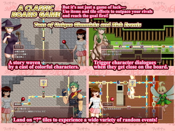 フィオナのリョナランルーレット(全年齢版・体験版) アイテムとマス効果を駆使して勝利を目指す戦略的すごろくゲーム 投稿者まるまろスタジオ 投稿日2025年 8月 09日 投票受付中 0 ■シンプルで分かりやすい、でも奥が深い すごろくゲーム! サイコロを振って、出た数だけ進むという誰もが知ってる、あのすごろくゲーム とてもシンプルで分かりやすい手軽に遊べるゲームです! でもただの運ゲーじゃない たくさんの工夫が凝らされていて、遊びやすいけど奥が深いそんなゲームです! ■数々のアイテム 多彩なギミック 単調じゃないゲームシステム! たくさん用意されたアイテムの数々 きちんと考えれば運に頼らなくても必ず攻略できる そんなゲームバランスになっています だけどもちろん敵もきちんと考えてアイテムを使ってきます ◆色々な効果を及ぼす特殊なマス ◆何が起こるか分からないハテナ・マス ◆分岐するルート ◆キャラクター同士の楽しい掛け合いただのすごろくに見えて飽きさせない工夫が盛りだくさん!一通りやるだけじゃこのゲームは遊び尽くせない!■製品版はこちらhttps://www.dlsite.com/home/work/=/product_id/RJ01445198.html/?utm_medium=affiliate&utm_campaign=sns_link&utm_content=RJ01445198&utm_source=t.co%2F 普通のすごろく、でも普通じゃないすごろく このゲームのポイント ■クリア時間6~10時間ほど(体験版の範囲だと1~2時間) YouTube動画 注目してほしい点 RPGツクールMZですごろくのゲームシステムを再現しました!でも普通のすごろくだと単なる運ゲーになっちゃうので、プレイヤーの思考や戦略が勝利につながるよう工夫しています! 制作者メッセージ ■実況・生放送について事前連絡不要でOKです。 動画のタイトルには「ゲーム名」を、説明文にはこのゲームページURLを入れていただけると助かります。 ※ 誹謗中傷や作品の世界観を壊すものはお控えください。マナーを守ってお願いします。 (何かあれば削除をお願いすることがあるかもしれませんが、ご協力お願いいたします) フィオナのリョナランルーレット(全年齢版・体験版) 対応OS 7 8 10 11 頒布形態フリーウェア カテゴリパズルゲーム・他 年齢制限全年齢 制作者まるまろスタジオ 制作サイトまるまろスタジオCi-en SNSX(Twitter) 本体サイズ308MB Version2.00 最終更新日2025年8月 9日 DL回数 お気に入り票0票 このゲームはパソコン用のファイルも提供しています。ゲームを遊びたい場合は、パソコンからアクセスしてください。 メールでパソコンにURLを送る フィオナのリョナランルーレット(全年齢版・体験版)にコメントを投稿する レビュー・感想を投稿する 報告・質問攻略を投稿する 名前 シナリオ・ストーリー シナリオの深さ。飽きずに長く遊べるようになっている工夫など。 12345 グラフィック ゲーム画面の画質。演出の綺麗さ、キャラクター面の見栄えなどで判断。 12345 サウンド ゲームイメージにマッチしているか。ボイスありの場合はセリフが棒読みでないか。 12345 システム 操作性やストレスなく遊べるか。レベルの高い技術を取り入れた作品かどうか。 12345 オリジナリティ 独創性があるか。斬新な演出や新たなジャンルの開拓など。 12345 総評(おもしろさ) 熱中したか、ハマれるかどうかなどゲームとしての魅力。 12345 ※評価は1つのゲームにつき1人1回のみ反映されます。 ※返信する時などレビューでない場合は、★を押さずにコメントのみで投稿してください。 ※コメントが「最高」など一言のみの場合スパム判定されます。より詳細にレビューしてください。 コメント コメントにネタバレ内容がありますか? 無し 有り コメントへの返信可否 返信可能 返信不要