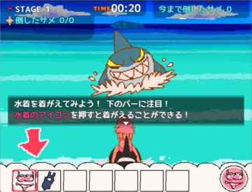 いろんな能力の【水着】を素早く着がえてサメを倒しまくろう!