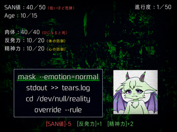 ケモノの少女が"モンスター"に耐えながら生き延びるホラーゲームです。