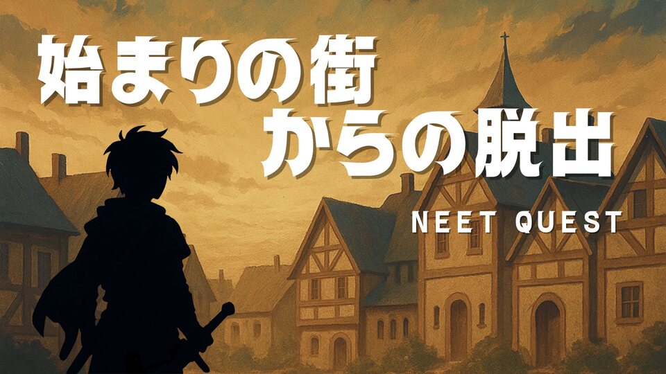 『始まりの街からの脱出ニートクエスト』は、引きこもりの主人公「ニイト」が仲間を集め、町を出るまでを描いた短編RPG風・脱出ゲームです。