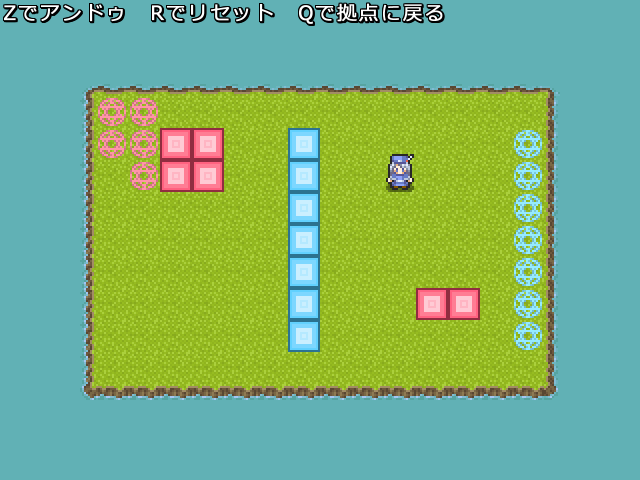 同じ色のブロック同士がくっつく倉庫番パズルです。