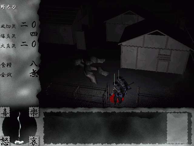マップ上のフィールドはひどく暗くて、自キャラの周りがなんとか見える程度だ。かなり接近しないと、敵キャラが見えないくらいなので、視覚だけでなく聴覚(音)も頼りにして、暗闇の中を移動。出会った敵と一瞬の攻防で決まる!