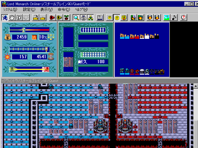 ロードモナークは、1つのマップには4つの国があり、そのなかの一つである自国の領地を広げながら、制限時間内に他国のリーダーを全て倒し、ステージをクリアしていくゲームです。 ゲームはリアルタイムで進行、その間キャラは自主判断で勝手に行動しているため、プレイヤーは好きな時に個々のキャラに指示を与えるだけというシンプル操作なのだが、その操作如何によってゲーム展開がかなり変わってくる。